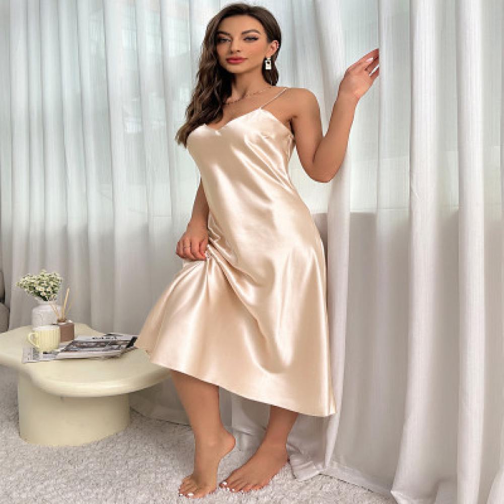 🔥 قميص نوم ساتان، لبس نوم ناعم، فستان نوم نسائي، بيجاما حرير، قمصان نوم طويلة، ملابس نوم جذابة للمتزوجات!