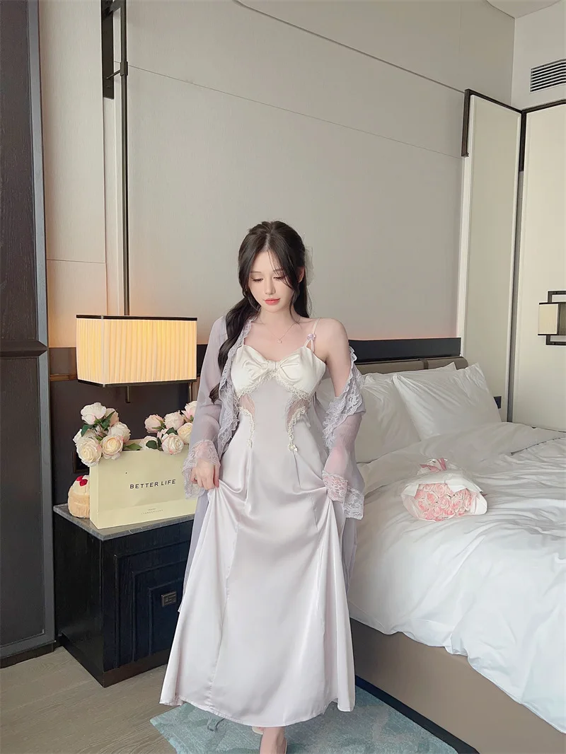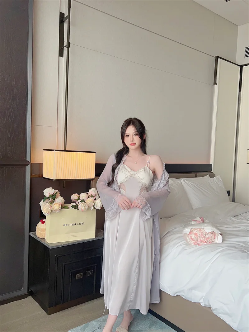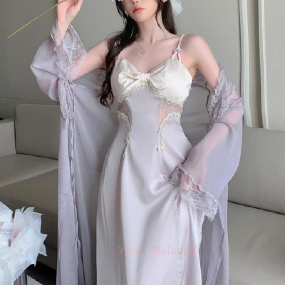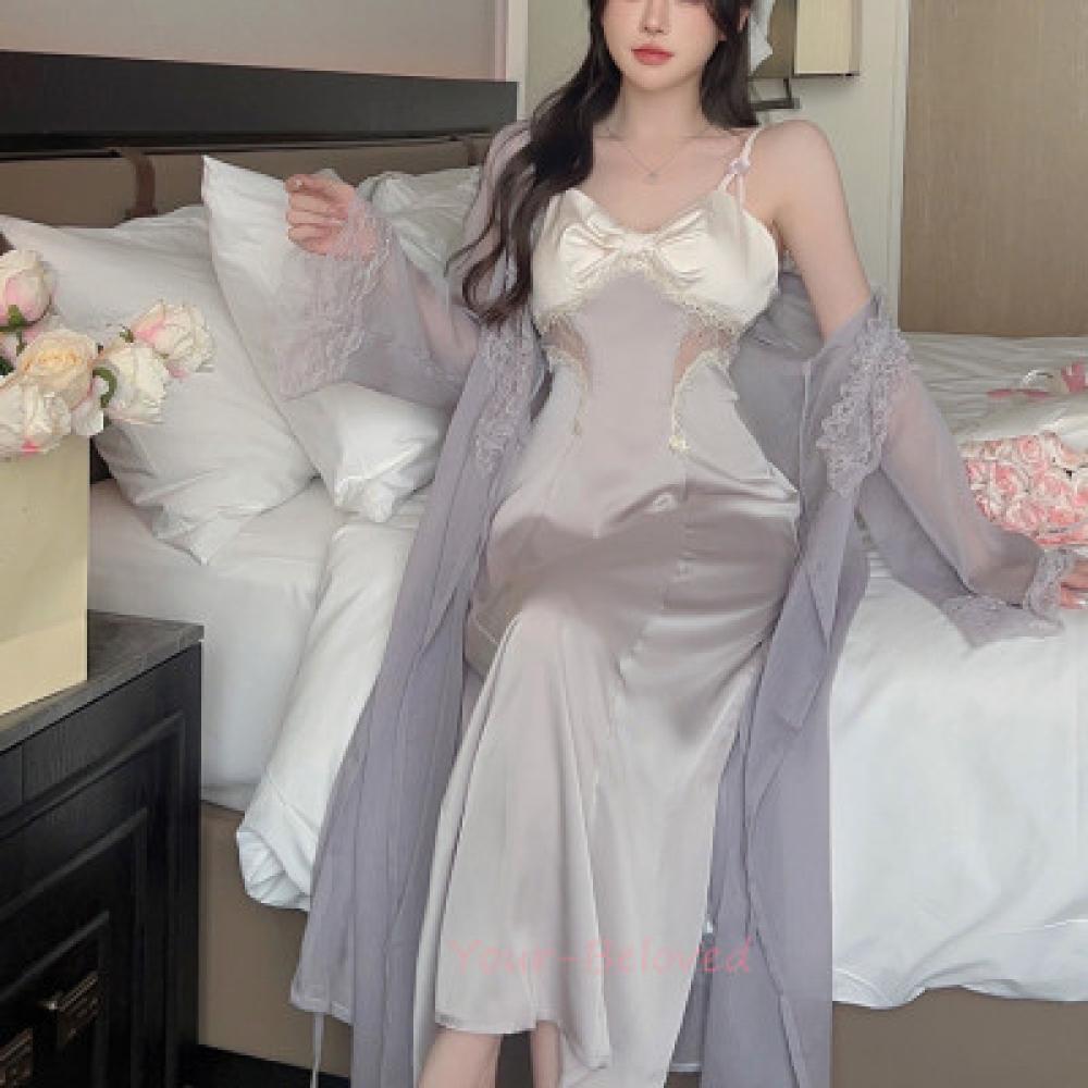 قميص نوم حرير – طقم نوم دانتيل – لانجري فاخر – لبس نوم نسائي – بيجامة ناعمة أنثوية