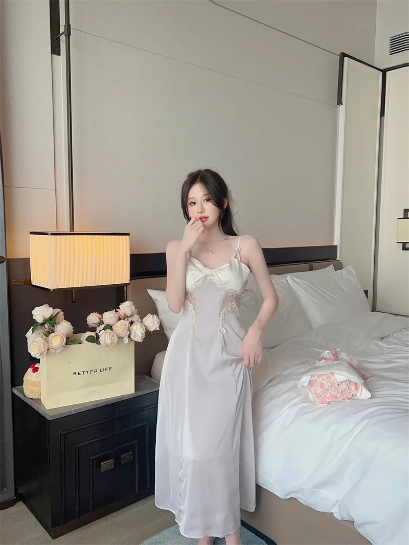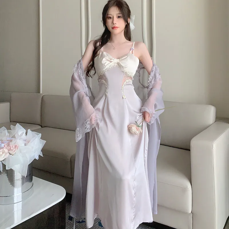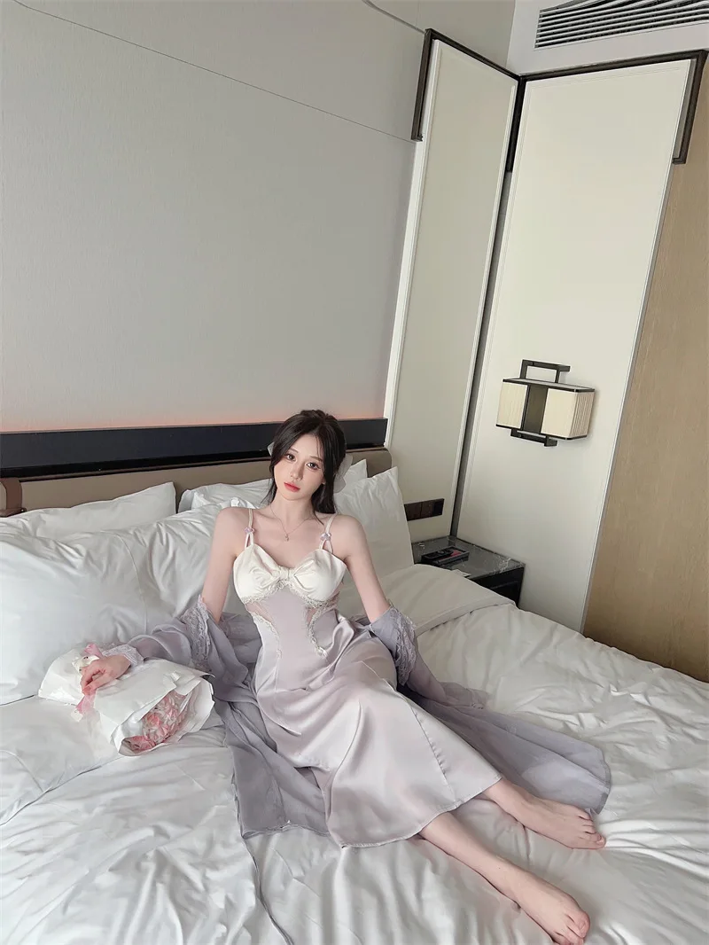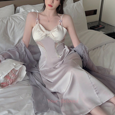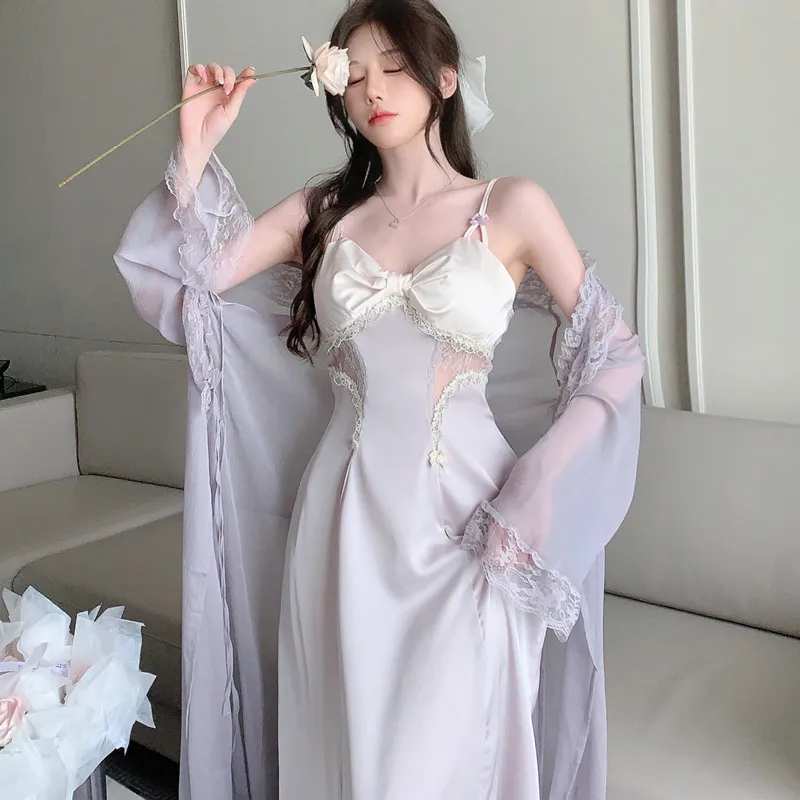 قميص نوم حرير – طقم نوم دانتيل – لانجري فاخر – لبس نوم نسائي – بيجامة ناعمة أنثوية